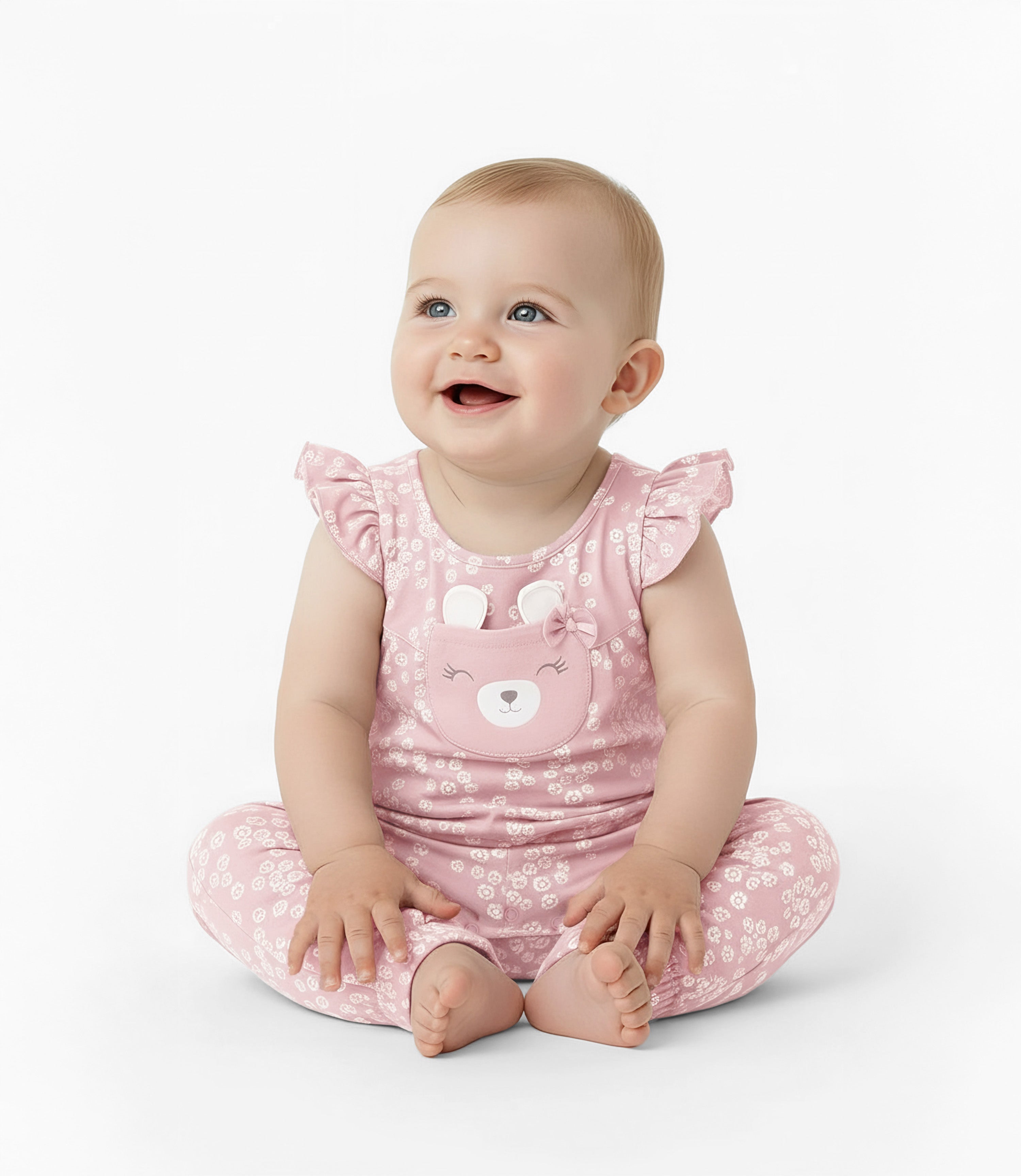 ¡Viste a tu recién nacida con estilo y comodidad con nuestro enterito sin manga con vuelos y piernas de puño!