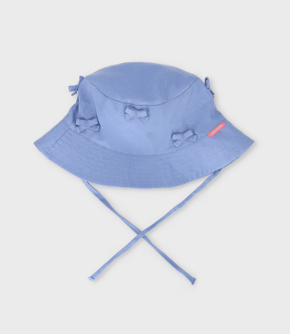 Gorro estilo bucket con aplicación de pequeños lazos.