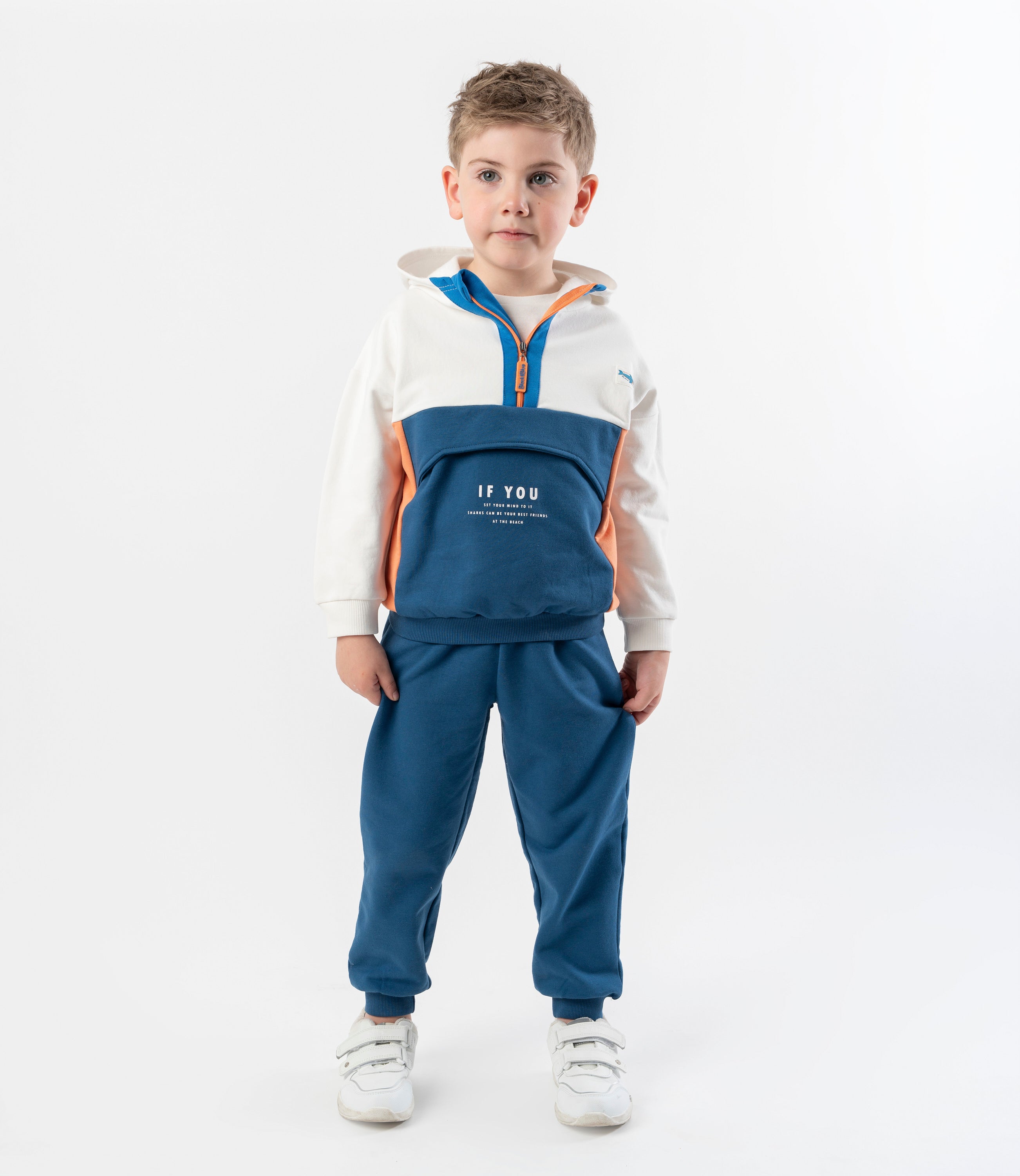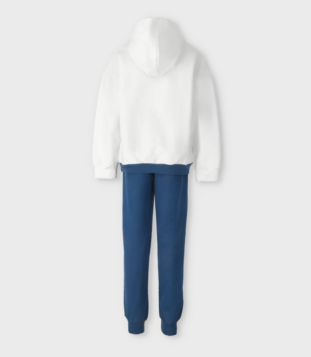 Incluye polerón con gorro, medio cierre y bolsillo frontal, junto con un pantalón estilo jogger con cintura elasticada y ajustable, que suman estilo y funcionalidad en una sola prenda.