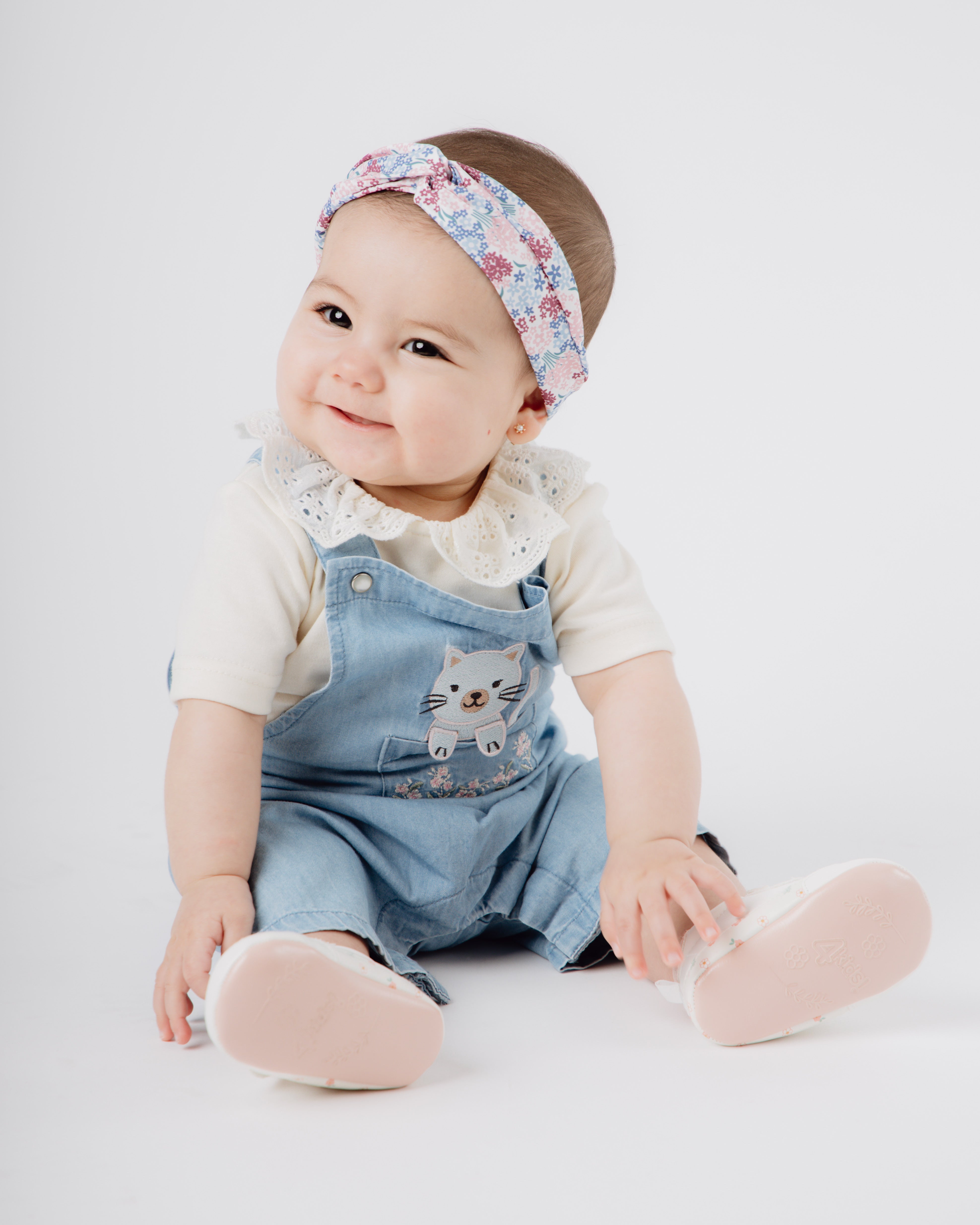 La jardinera compuesta de 100% algodón, cuenta con botones ocultos en la entrepierna, haciendo que el cambio de ropa sea fácil y práctico.