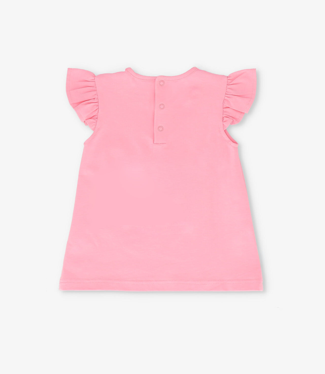 Nuestra polera manga corta con diseño de cartera y koala para bebé combina simplicidad y estilo para acompañar cada momento del día. Está confeccionada en jersey y 97% algodón, 3% elastano, con un diseño con vuelos en las mangas que aporta frescura y comodidad para cada momento.