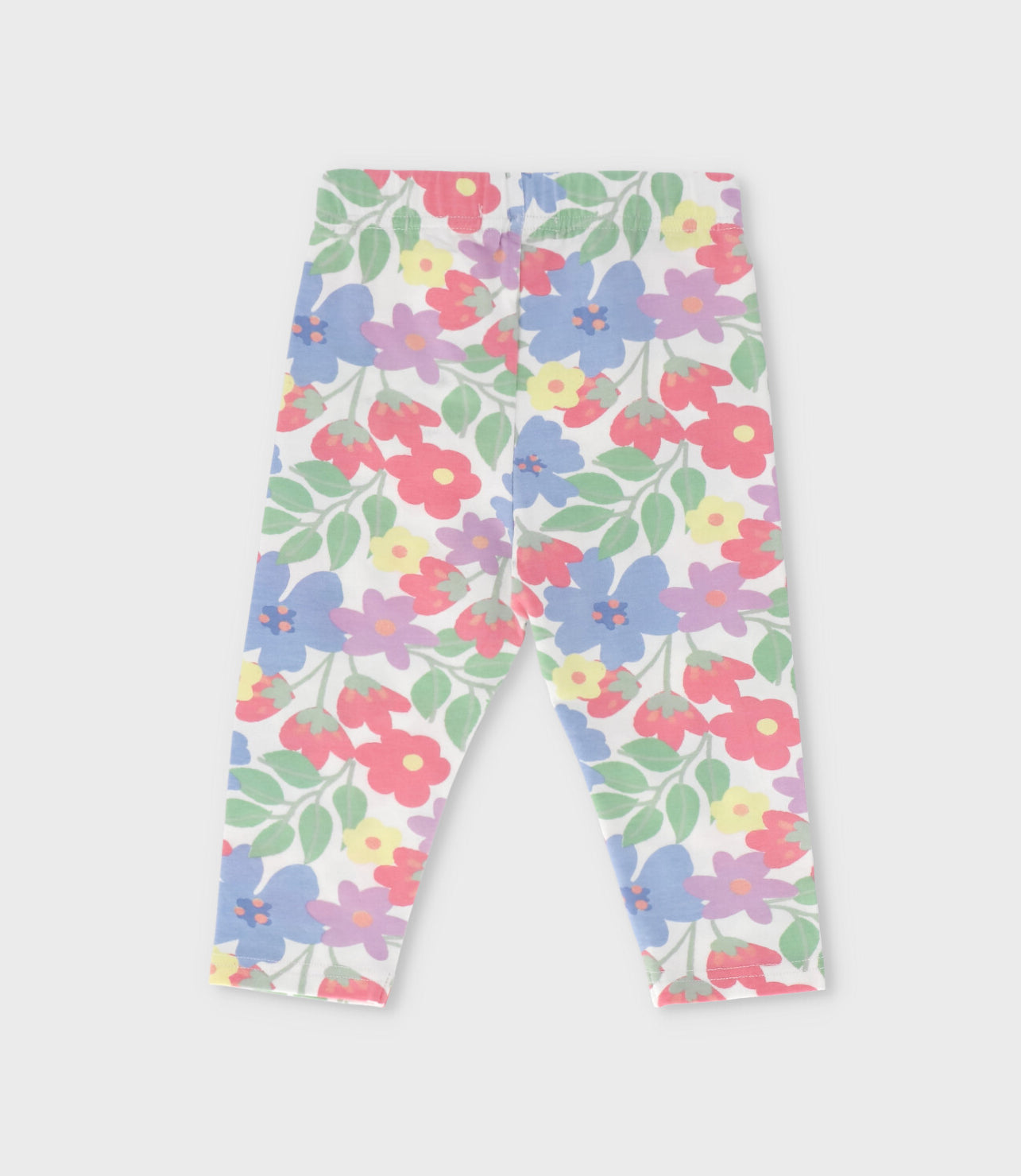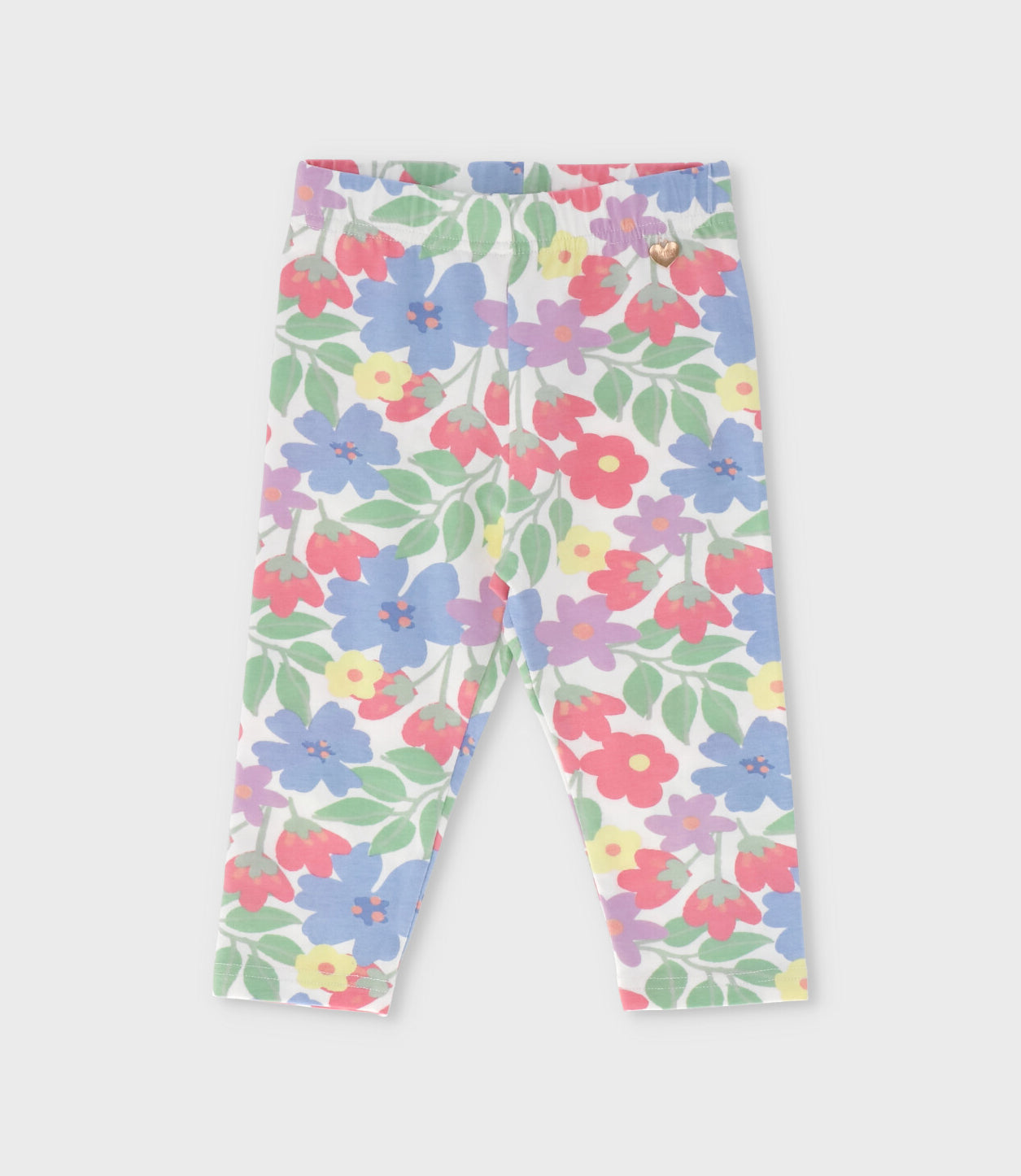 Estas calzas floreadas, confeccionadas en tela jersey con una composición de 95% algodón y 5% elastano, ofrecen la comodidad y flexibilidad que tu niña necesita para jugar sin límites.