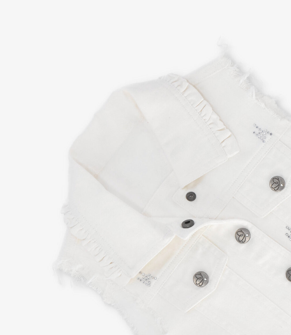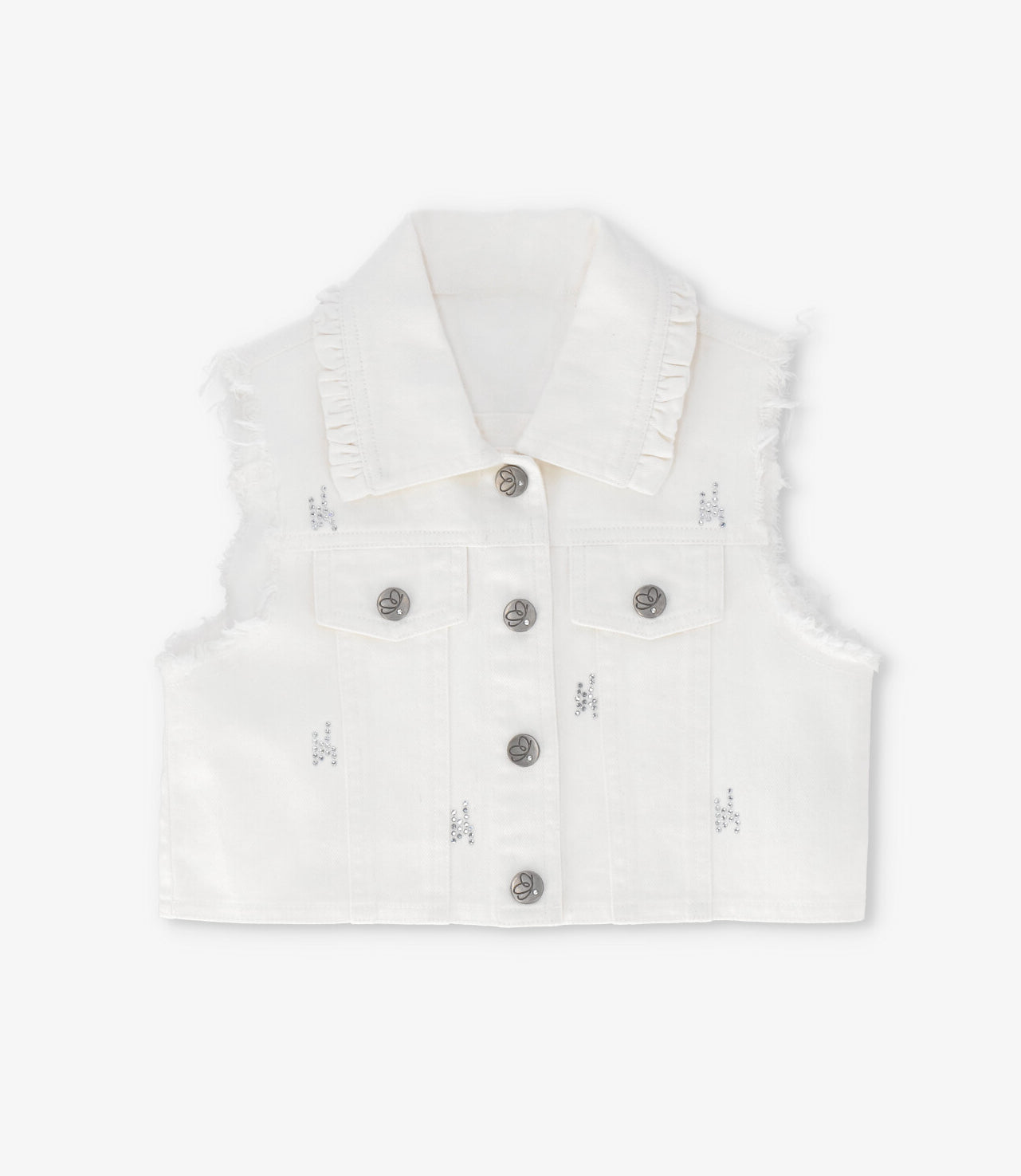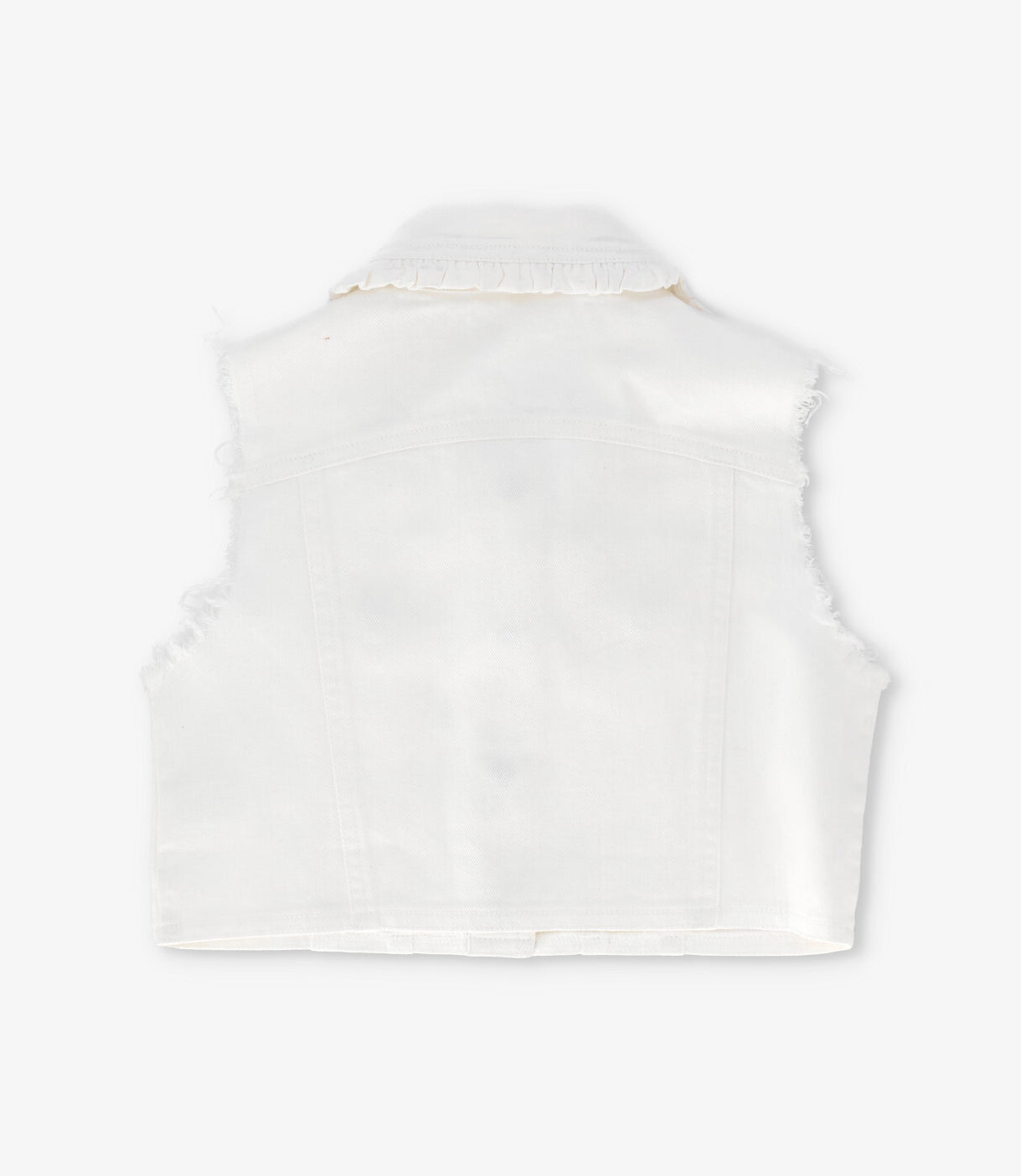 Nuestra chaqueta sin mangas para niña es la prenda ideal para los días en que tu Limo Lover necesita abrigo ligero y mucho estilo. Confeccionada en denim y 73% algodón, 24% poliéster y 3% elastano, combina comodidad y calidez. Su diseño con borde deshilachado te ayudará a crear looks increíbles para cualquier ocasión.