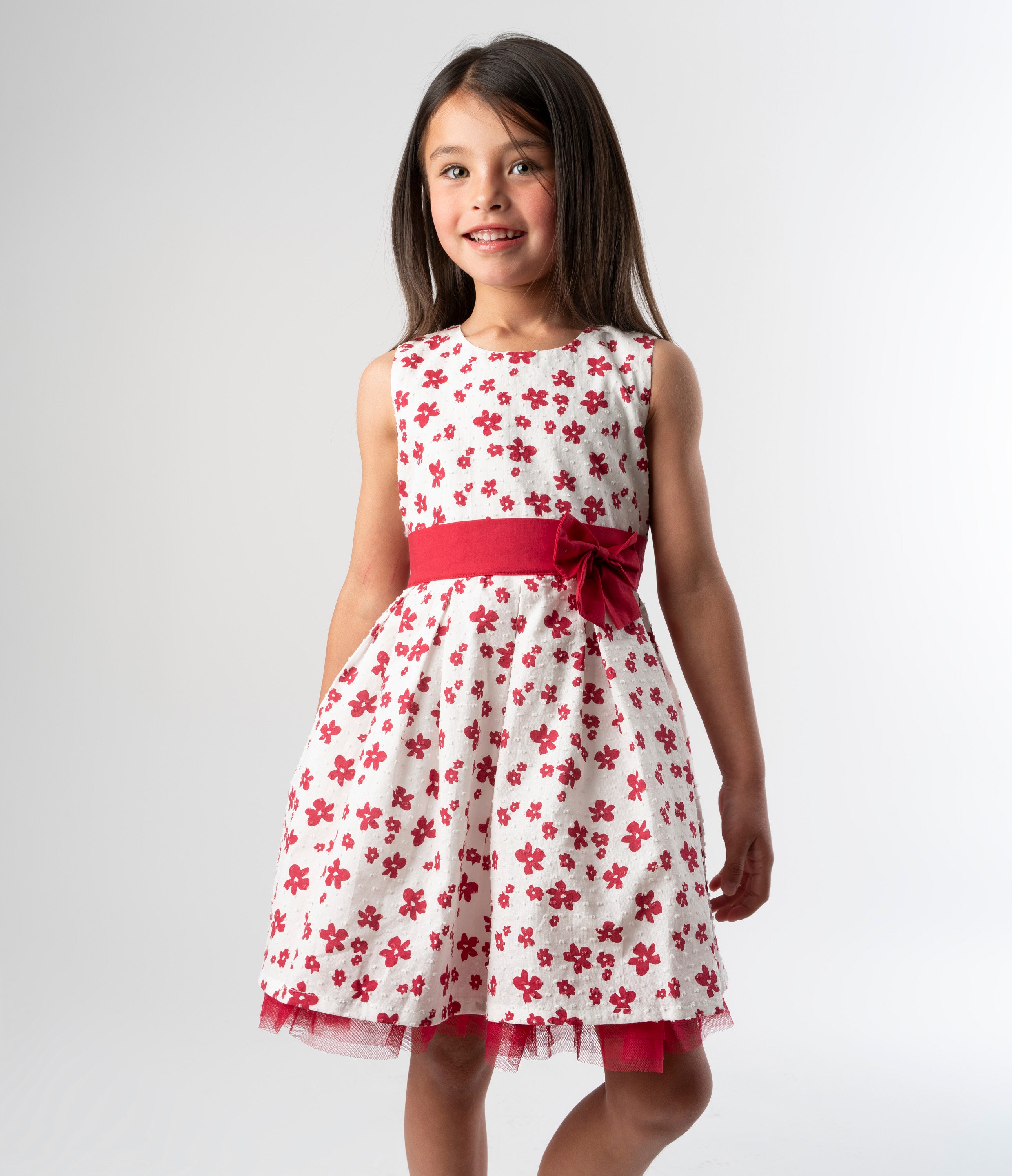 Nuestro vestido floreado para niña es una prenda infaltable en el clóset de tu Limo Lover. Confeccionado en puntos suizos y 100% algodón, ofrece comodidad y un diseño con lazo en la cintura que resalta su estilo en cualquier ocasión. Fácil de combinar y perfecto para esta temporada,es ideal para crear looks llenos de la personalidad única de tu hija.