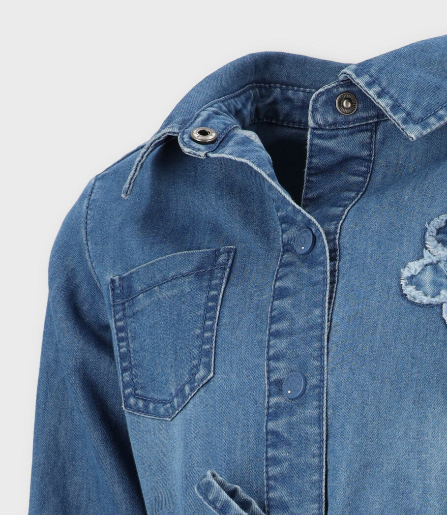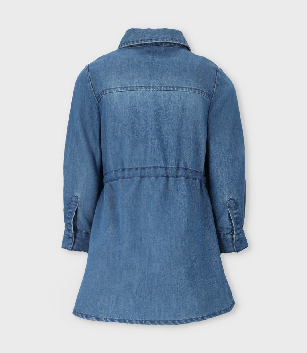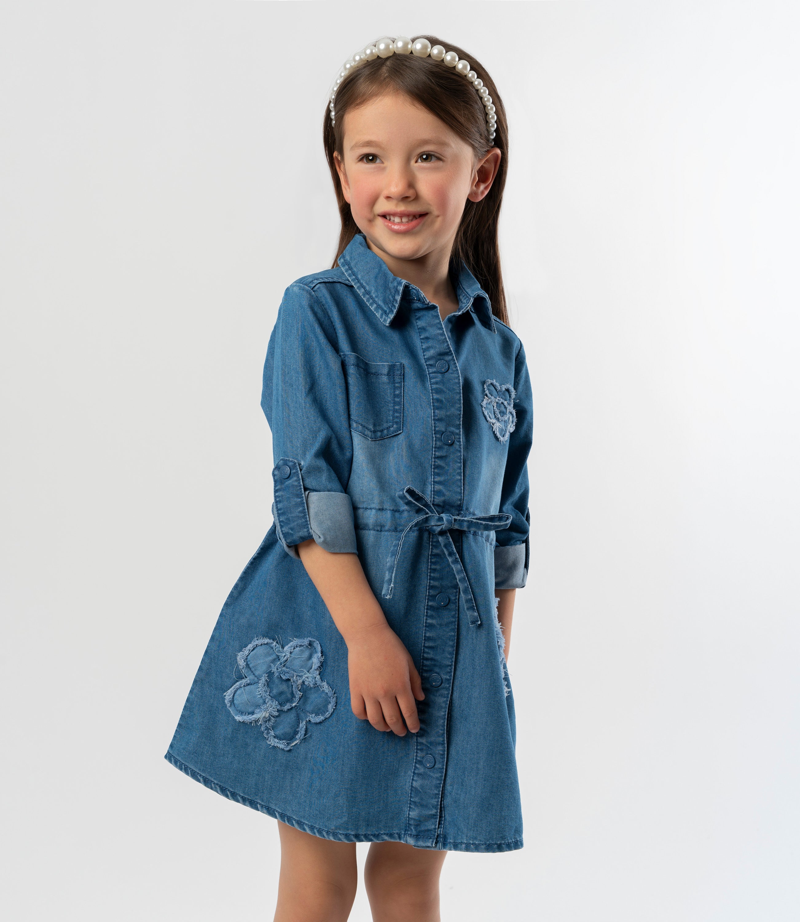 Nuestro vestido aplicación de flores para niña es una prenda infaltable en el clóset de tu Limo Lover. Confeccionado en denim y 98% algodón y 2% elastano, ofrece comodidad y un diseño con cintura elasticada que resalta su estilo en cualquier ocasión. Fácil de combinar y perfecto para esta temporada,es ideal para crear looks llenos de la personalidad única de tu hija.