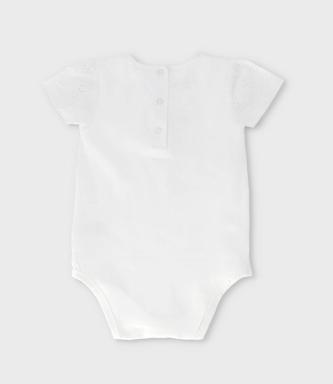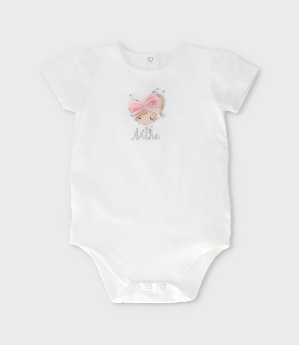 Nuestro body manga corta con estampado es ideal para acompañar a tu recién nacida en sus primeros días con total comodidad. Confeccionado en jersey y 97% algodón, 3% elastano, su diseño con mangas bordadas entrega suavidad, libertad de movimiento y practicidad para cambios de ropa. Una prenda básica y funcional que no puede faltar en climas más cálidos.