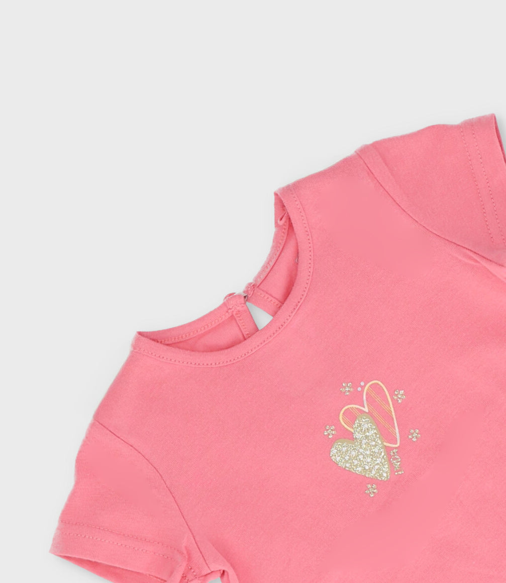 Nuestra polera manga corta básica para bebé combina simplicidad y estilo para acompañar cada momento del día. Está confeccionada en jersey y 97% algodón, 3% elastano, con un diseño con estampado de corazones que aporta frescura y comodidad para cada momento.