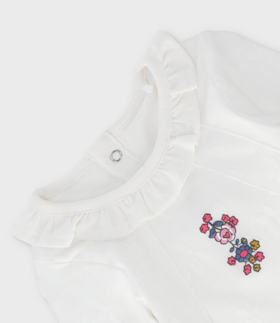 Perfecta para acompañar a tu Limo Lover en sus actividades diarias, nuestra polera manga larga flores bordadas para bebé está confeccionada en jersey y 97% algodón y 3% elastano, ofreciendo suavidad y libertad de movimiento. Su diseño con vuelos en el cuello la convierte en una prenda versátil y cómoda para usar sola o como parte de un look en capas.