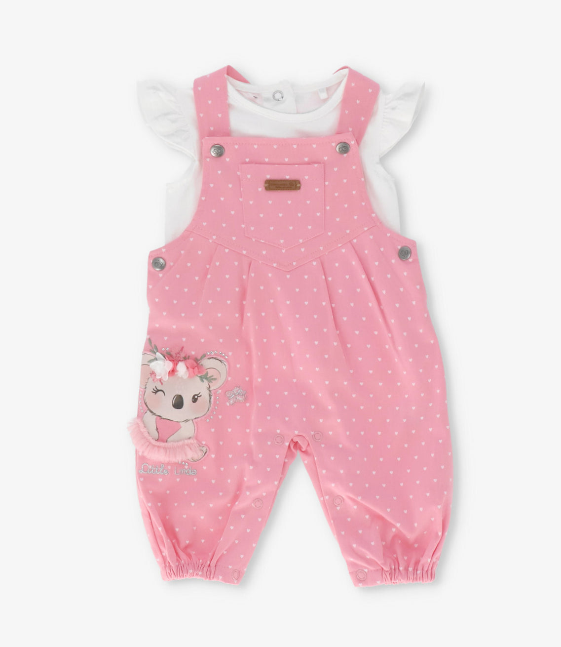 Nuestra jardinera con corazones y koala para recién nacida es ideal para esos días en que tu Limo Lover necesita un look cómodo, original y con un toque especial. Confeccionada en sarga y 95% algodón y 5% elastano, su diseño que incluye polera permite crear combinaciones versátiles para acompañarla en cada momento con estilo y libertad.