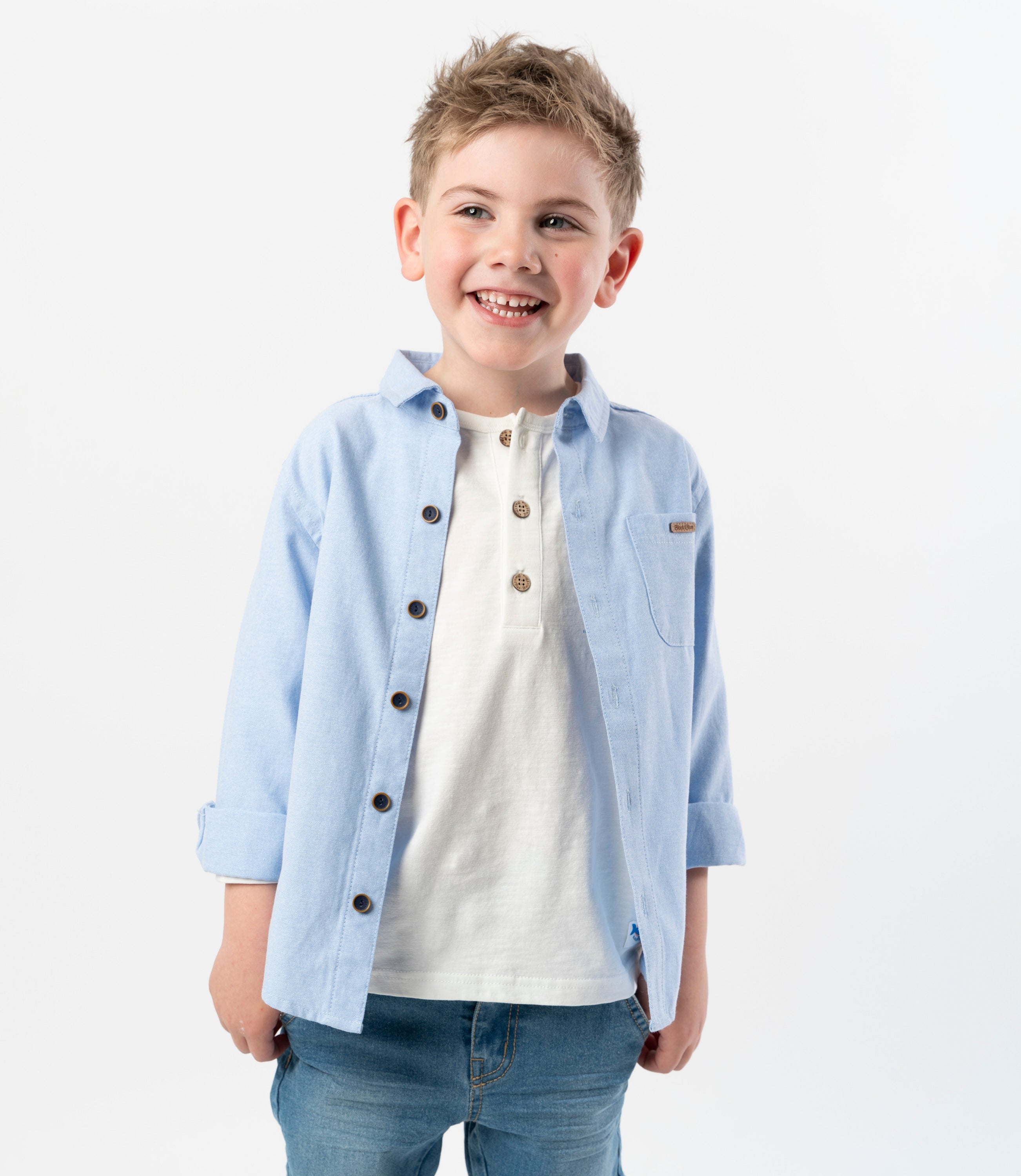 Nuestra camisa manga larga básica le entrega a tu hijo un look moderno y versátil.