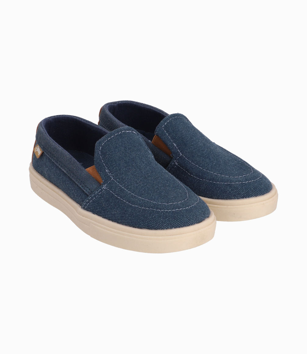 Alpargata azul piedra. Suela gruesa y plana. Puntera cerrada.
