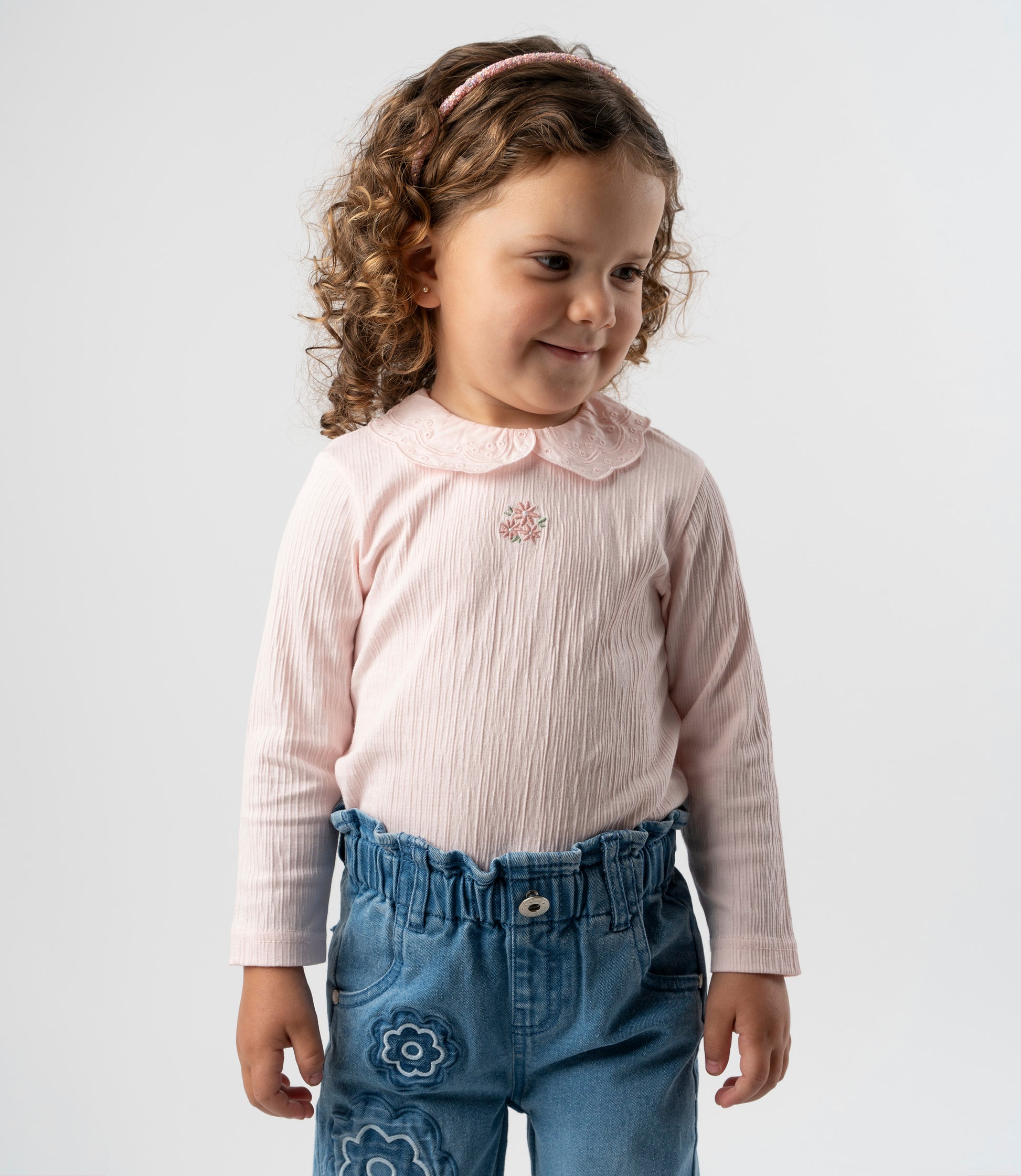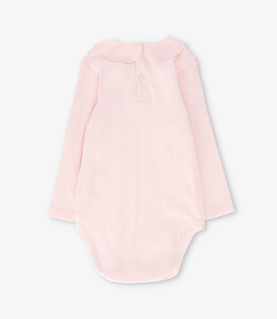 Este body manga larga para bebé niña con vuelos ofrece suavidad y comodidad para acompañar cada movimiento.