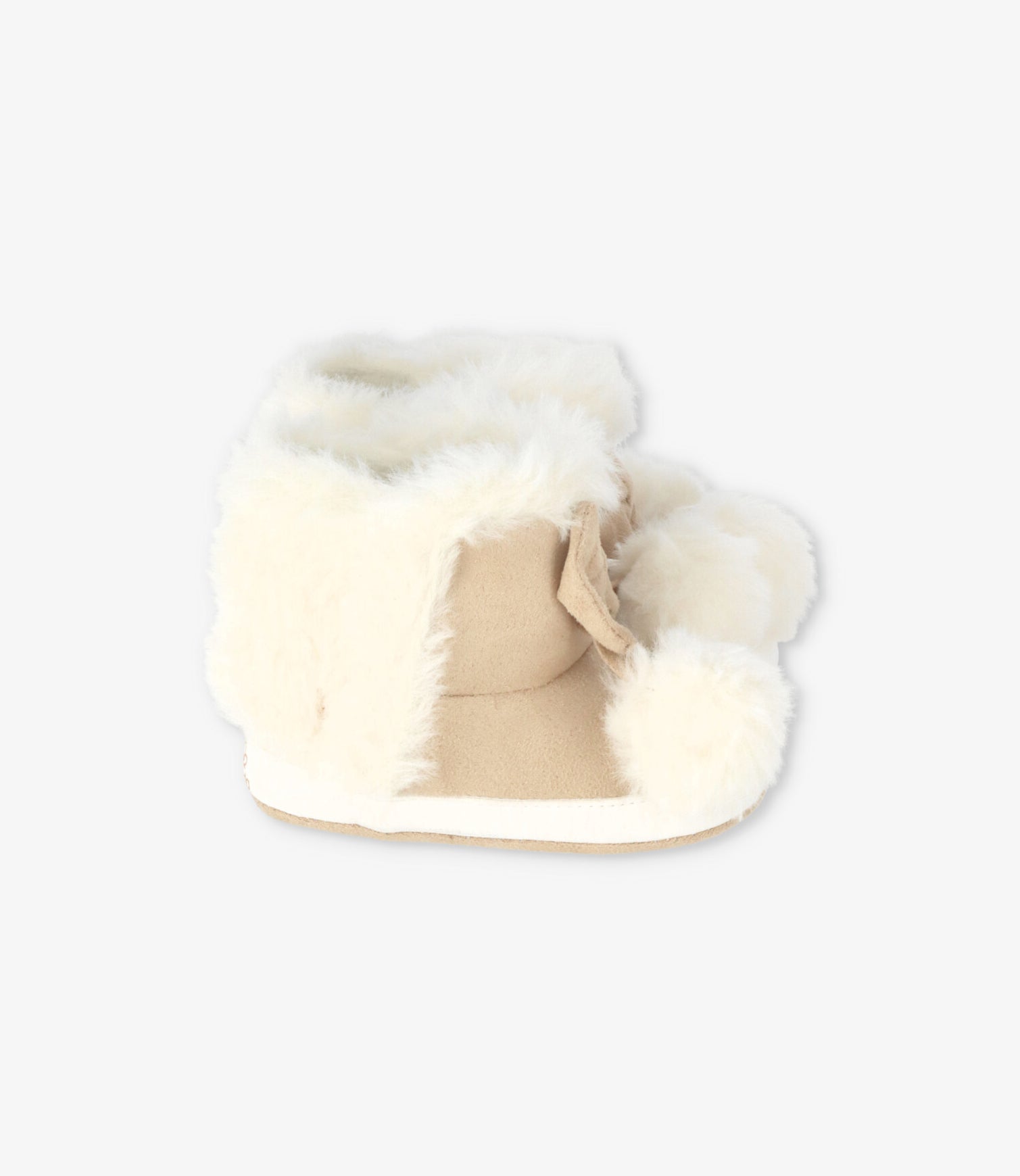 Bota para recién nacida con aplicación de lazo y sherpa. Composición exterior: 100% textil.