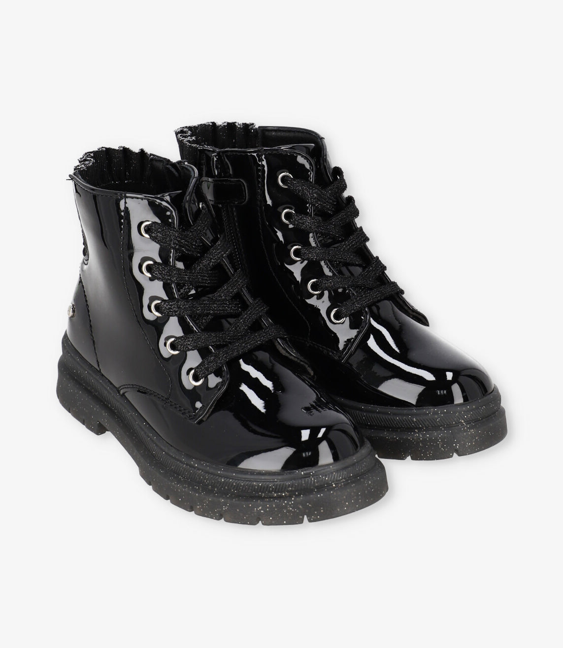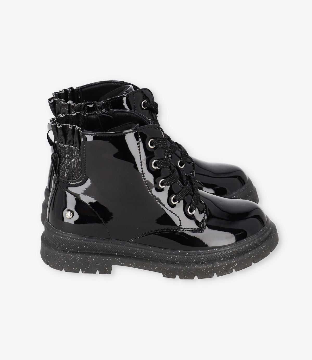Botín para niña con terminación brillante. Composición exterior: 100% Sintético. Plantilla de cuero.