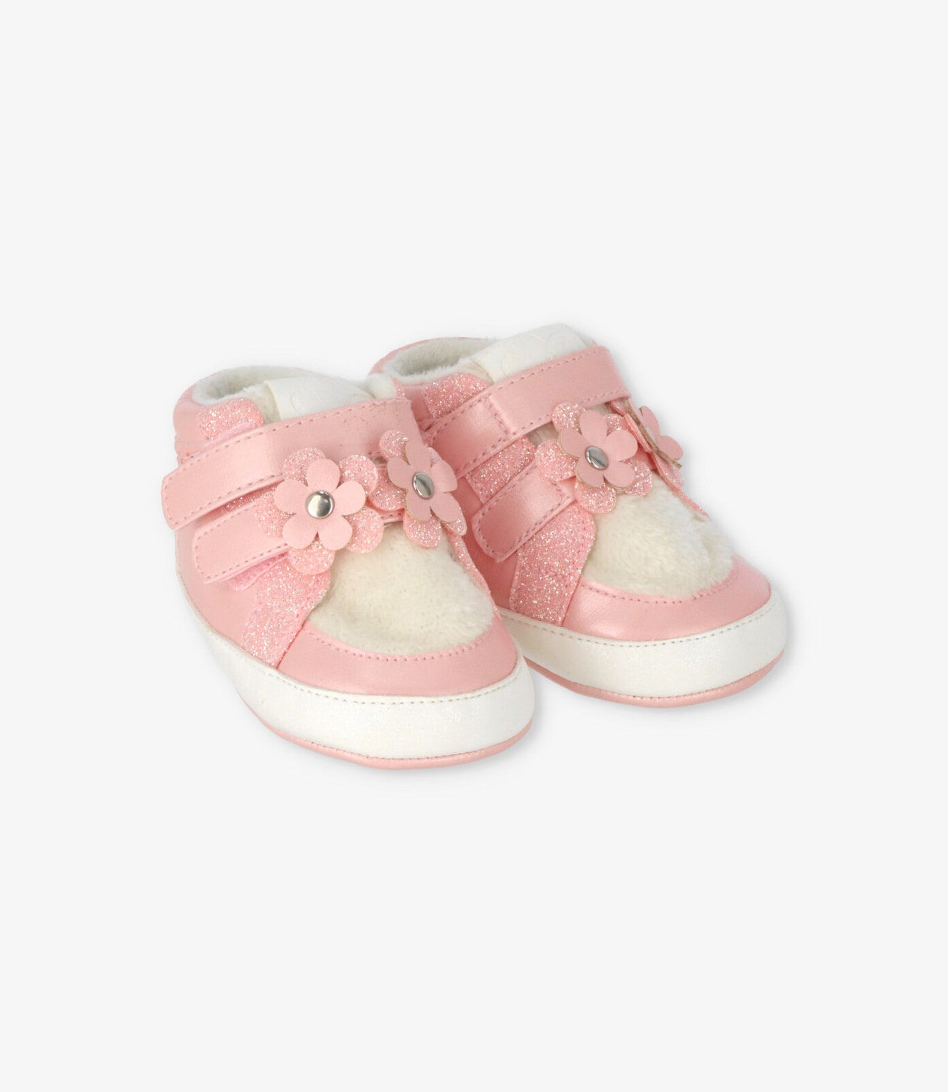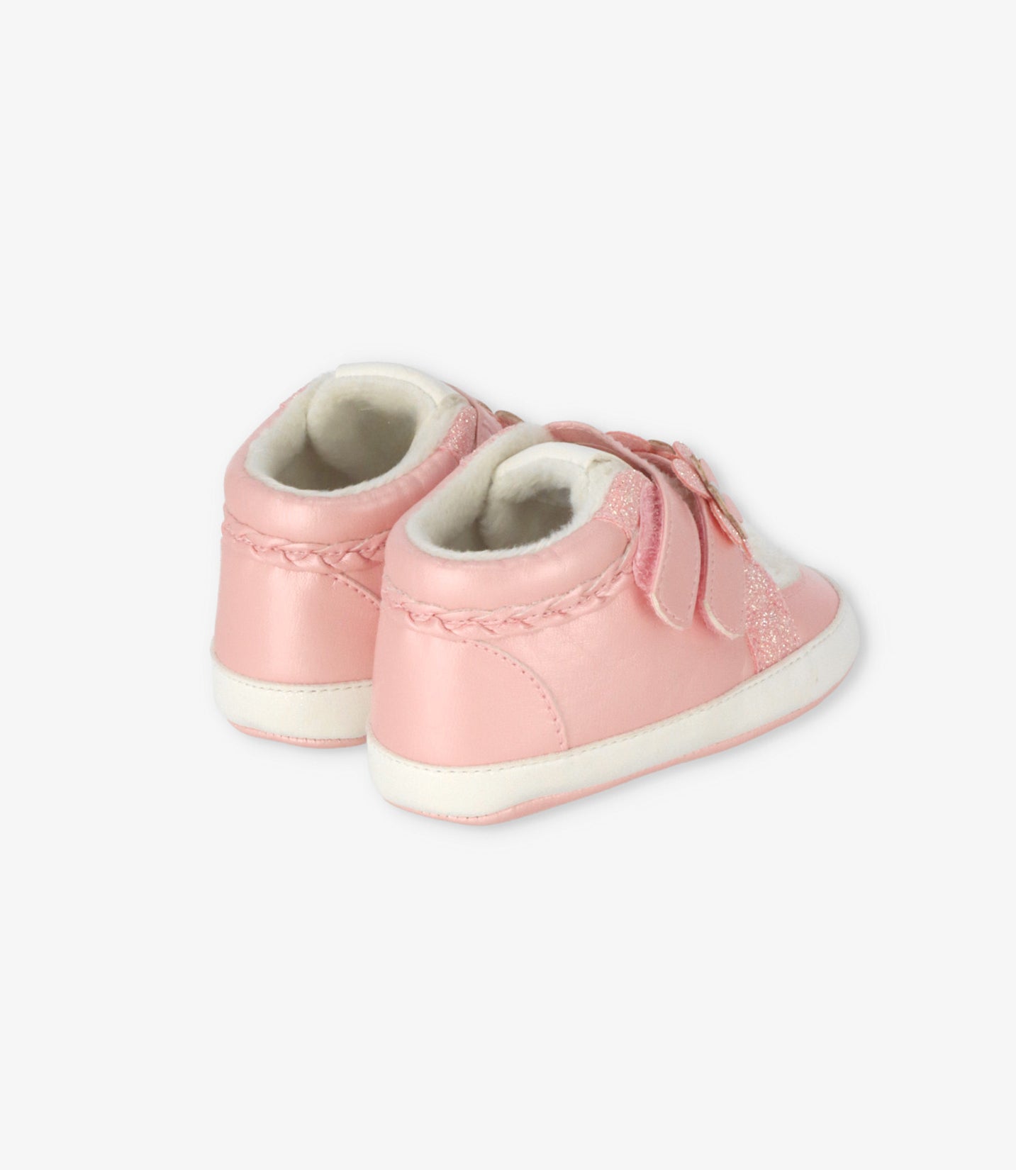 Botín para recién nacida con trenzado, brillos, oveja y velcro. Composición exterior: 90% sintético, 10% textil.