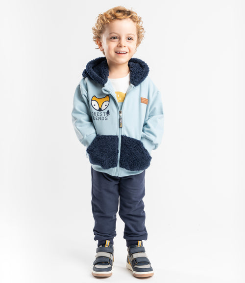 Nuestro buzo básico es ideal para que tu bebé disfrute cada momento con estilo y comodidad. Confeccionado en tela algodoón y una composición de 60% algodón, 38% poliéster y 2% elastano, combina suavidad y resistencia para acompañar sus aventuras todos los días. Incluye un polerón con cierre y bolsillos y un cómodo pantalón.