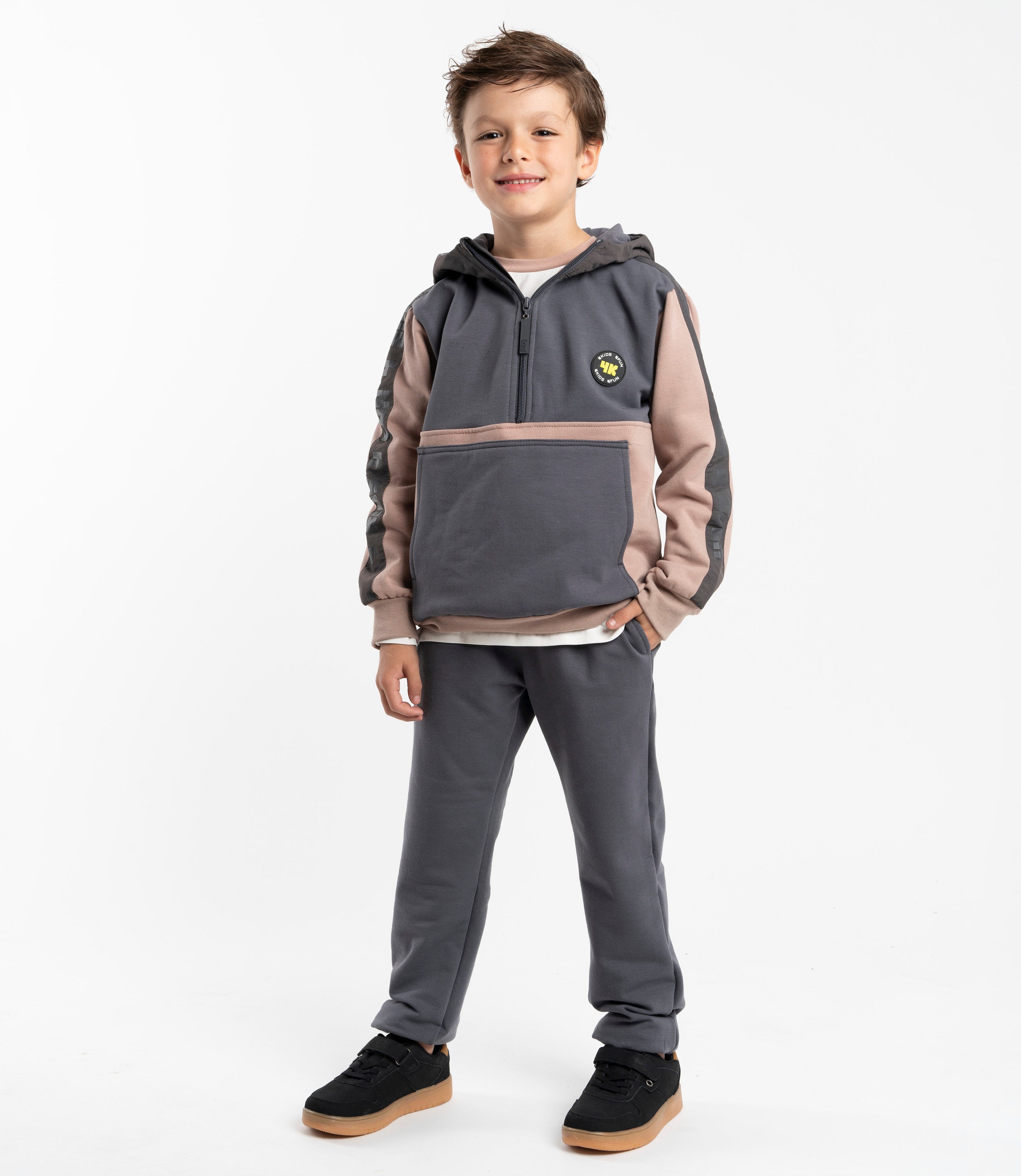 ¡Listo para acompañar toda la energía de tu niño! Este buzo fun 4 ever, confeccionado en tela algodón con una composición de 60% algodón, 35% poliéster y 5% elastano, combina comodidad y libertad de movimiento para que cada juego sea más divertido. Sus detalles que incluyen polerón con bolsillo frontal y medio cierre y pantalón de buzo estilo jogger con bolsillo cargo y cintura elasticada, lo convierten en una prenda esencial para el día a día.