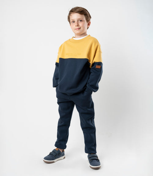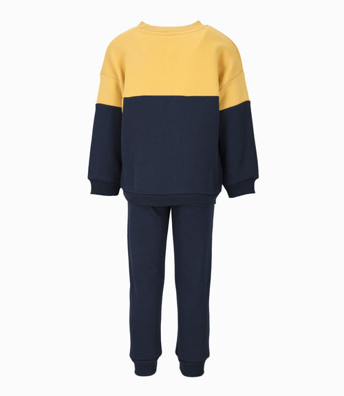 Nuestro buzo tricolor es ideal para que tu hijo disfrute cada momento con estilo y comodidad. Confeccionado en tela algodón y una composición de 60% algodón, 38% poliéster y 2% elastano, combina suavidad y resistencia para acompañar sus aventuras todos los días. Incluye un polerón con diseño emboss y un cómodo pantalón con cintura elasticada y ajustable.