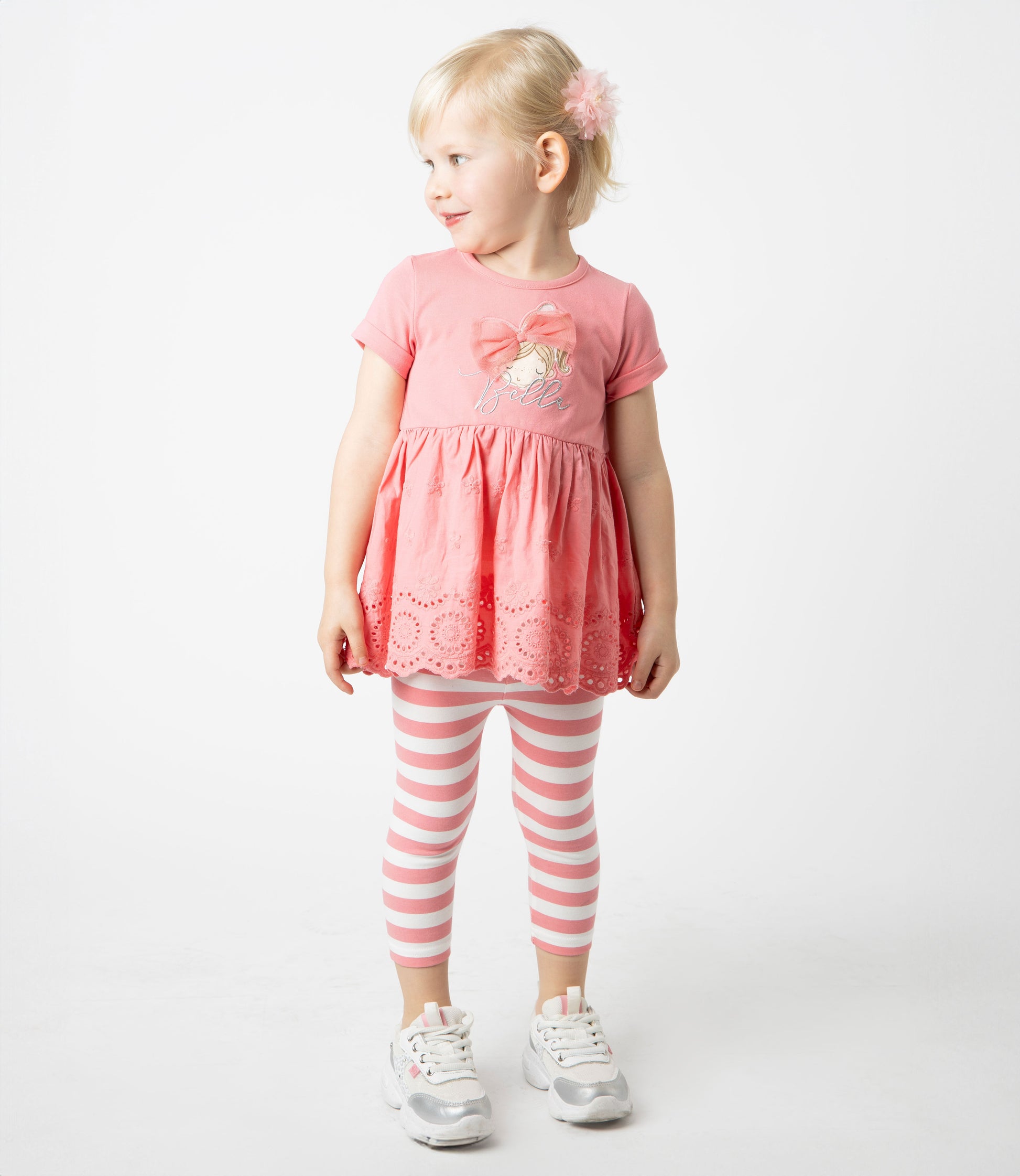 Nuestro conjunto con bordado para bebé es una opción práctica y con estilo para el día a día. Confeccionado en jersey y 97% algodón, 3% elastano, entrega comodidad en cada movimiento. Su diseño con calzas floreadas lo convierte en una prenda versátil para combinar y acompañar a tu Limo Lover en todas sus aventuras y ocasiones especiales.