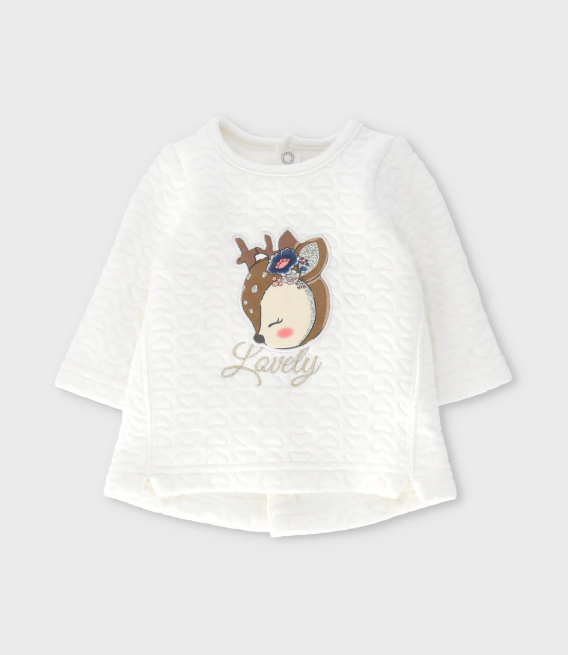 Nuestro conjunto con ciervo y corazones para recién nacida es una opción práctica y con estilo para el día a día. Confeccionado en acolchada y 60% algodón, 35% poliéster y 5% elastano, entrega comodidad en cada movimiento. Su diseño con botones a presión lo convierte en una prenda versátil para combinar y acompañar a tu Limo Lover en todas sus aventuras y ocasiones especiales.