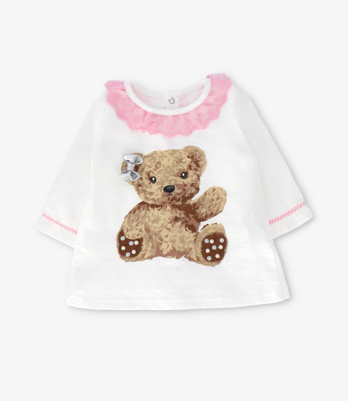 Este conjunto para recién nacida destaca por su diseño con oso, confeccionado con una composición de 95% algodón, 5% elastano que entrega comodidad y suavidad en cada uso. Sus botones a presión en la espalda realzan el estilo característico de Limonada, logrando una combinación práctica y moderna para acompañar su día a día.