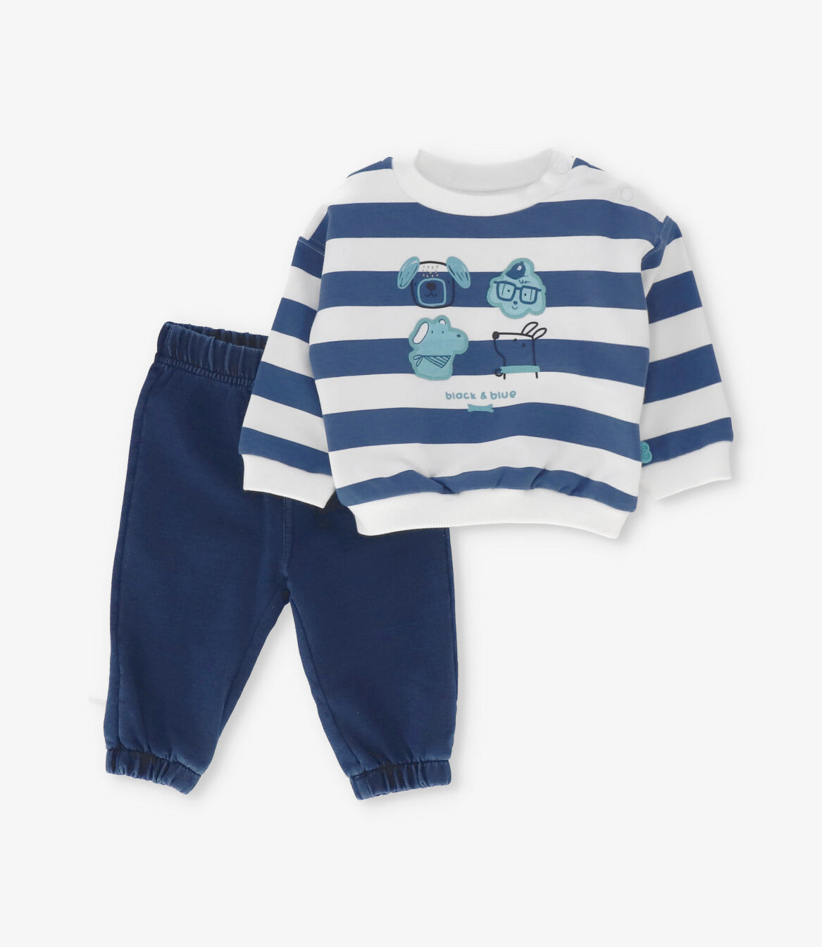 Incluye polerón de cuello redondo con botones a presión en hombro y pantalón tipo calzas elasticadas, ideales para mantener al bebé abrigado y cómodo en todo momento.