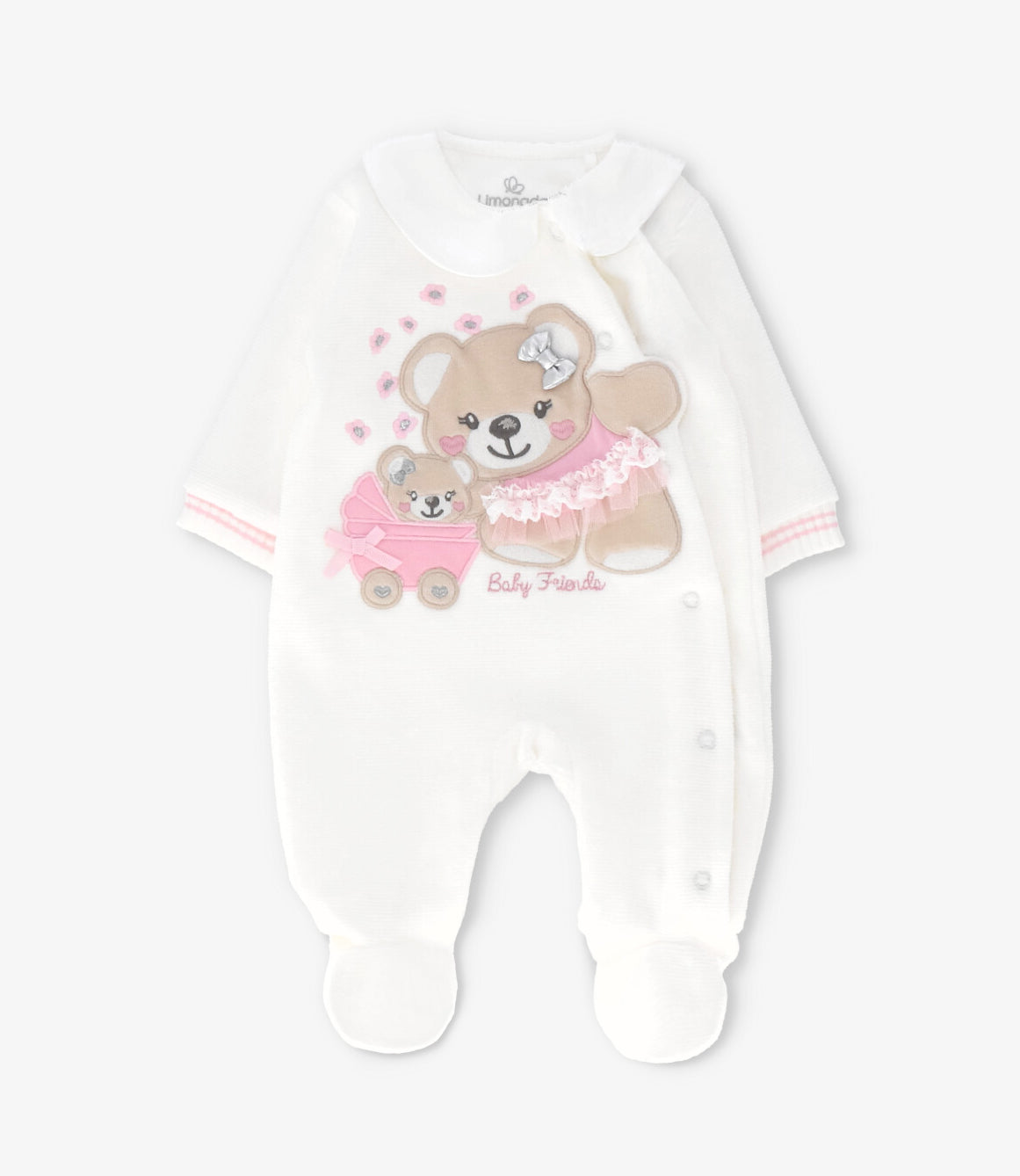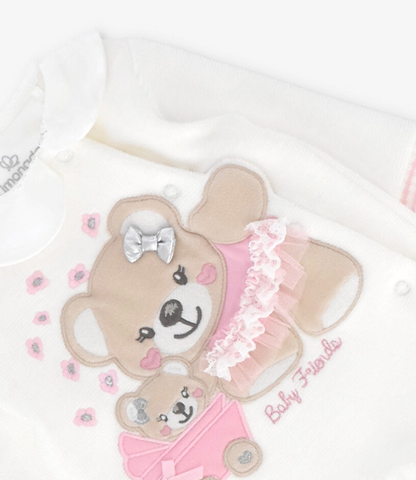 Este enterito para recién nacida destaca por su diseño con oso, confeccionado en cotelé terciopelo con una composición de 80% algodón, 20% elastano que aporta suavidad y comodidad desde el primer día. Sus botones a presión suman un toque especial y funcional, ideal para acompañar cada movimiento con el estilo característico de Limonada.