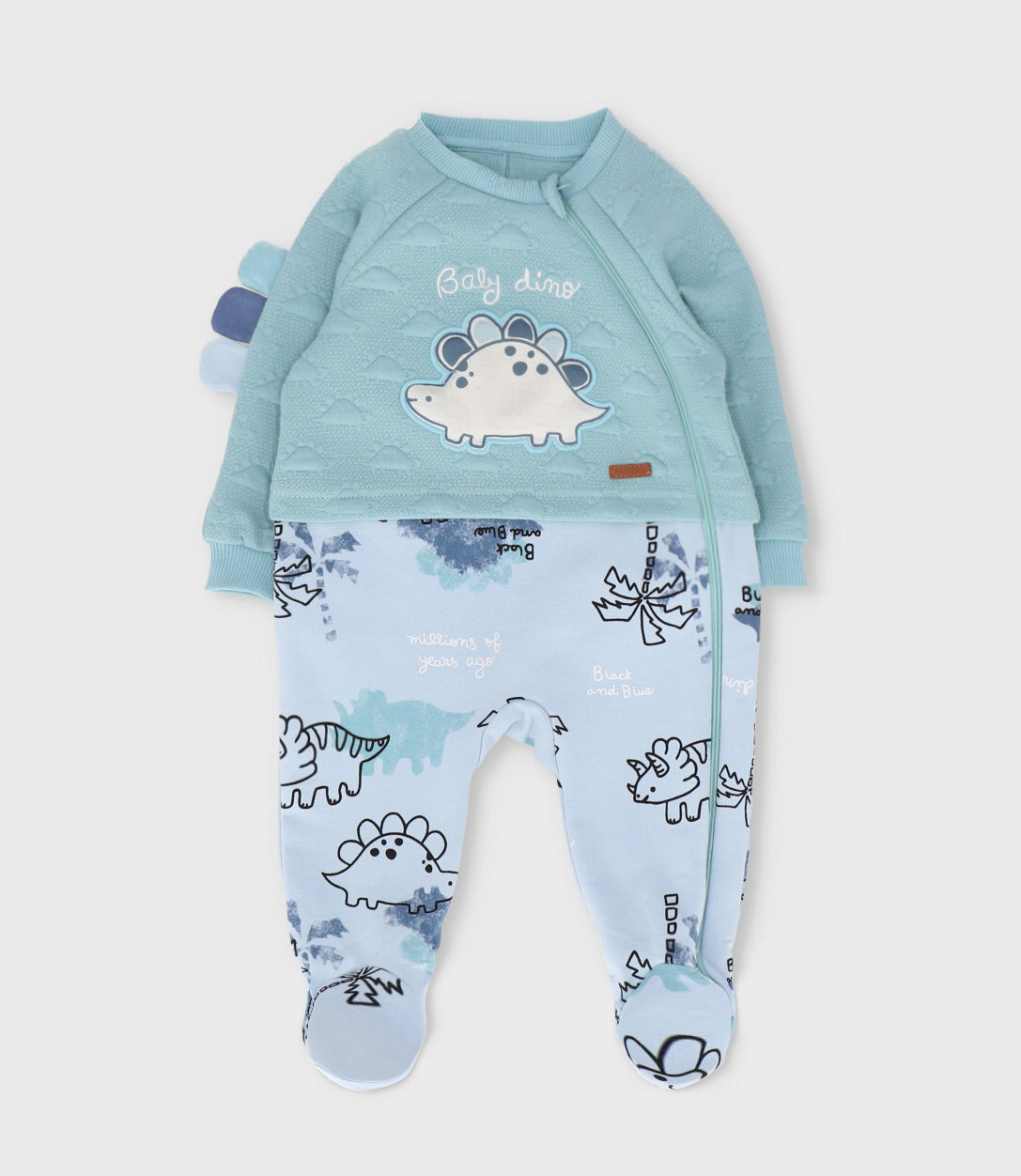 Nuestro enterito baby dino es una prenda práctica, infaltable y con estilo para tu bebé.