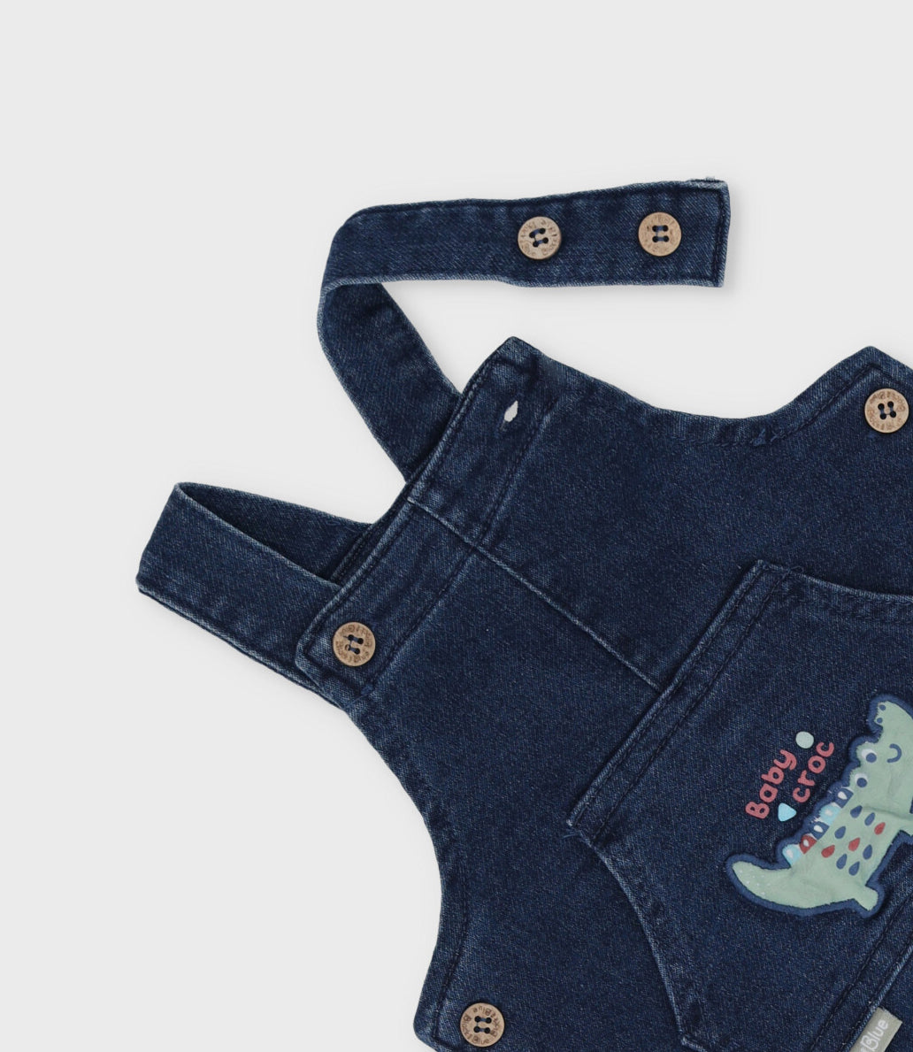 Confeccionado con tela denim y una mezcla de 81% algodón, 17% poliéster y 2% elastano, esta jardinera ofrece una comodidad excepcional para la delicada piel de tu recién nacido.