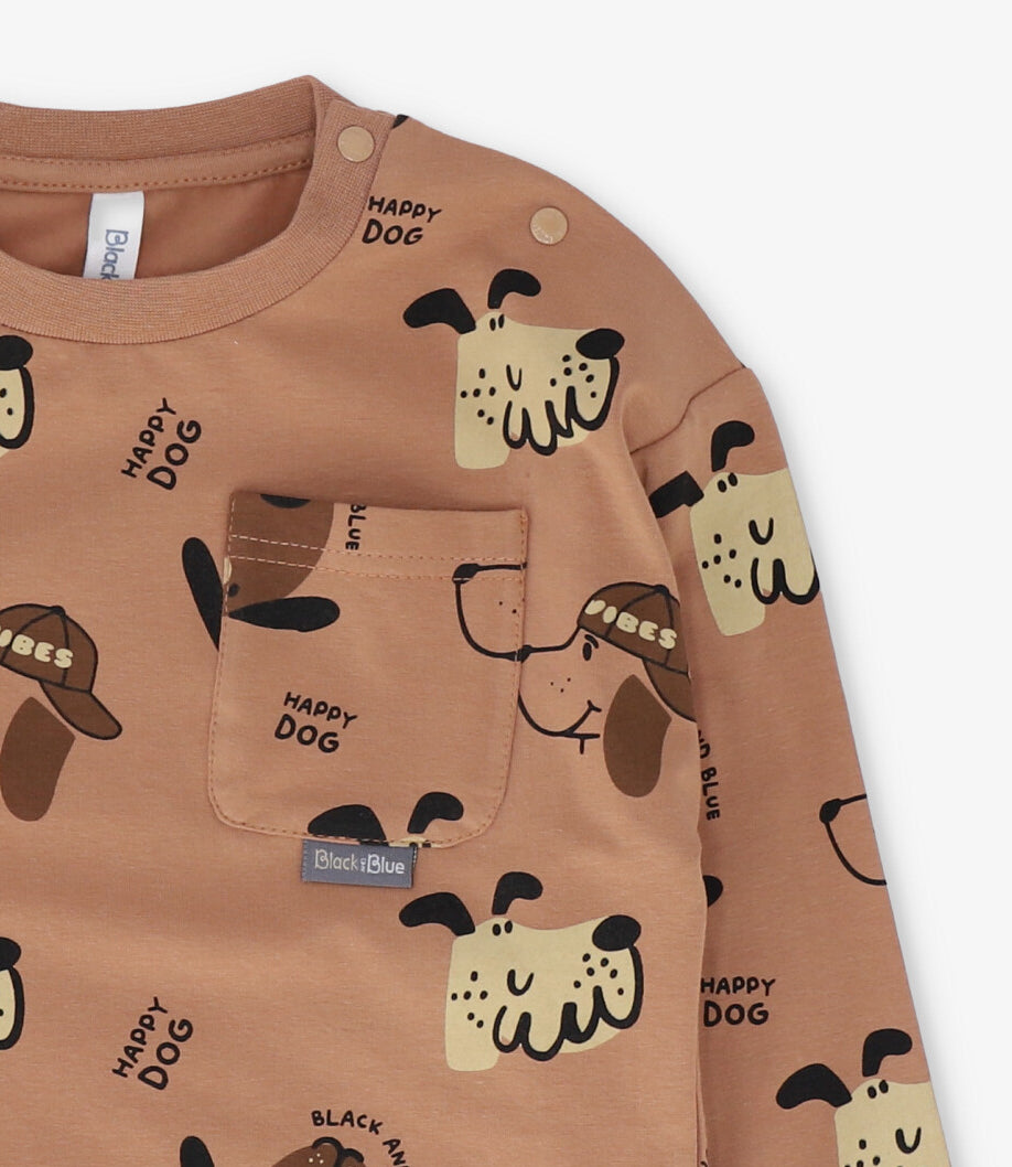 Esta polera manga larga para bebé modelo happy dog está confeccionada en tela jersey con una composición de 98% algodón y 2% elastano.
