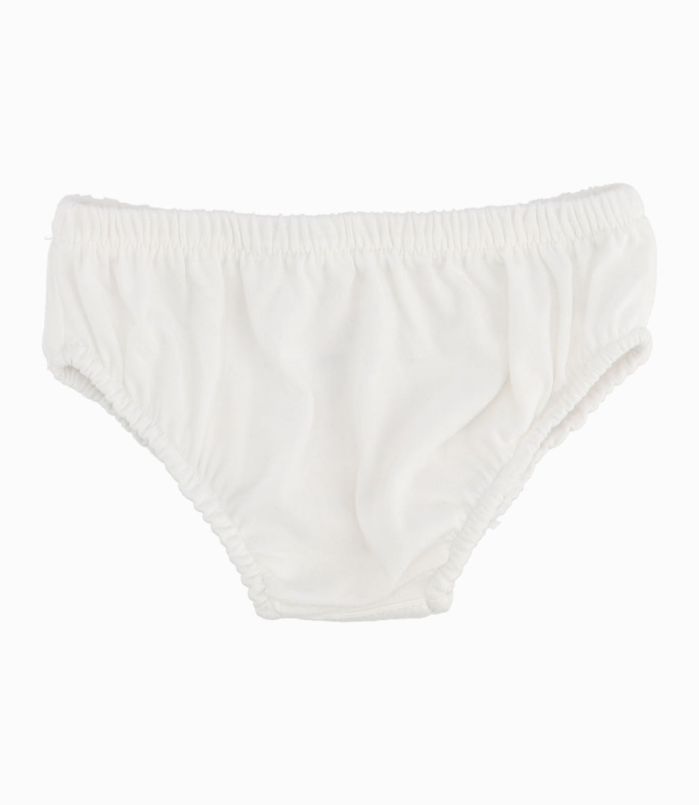 Vestido manga corta con diseño floreado y lazo decorativo. La parte superior está confeccionada en encaje. Incluye calzón blanco.