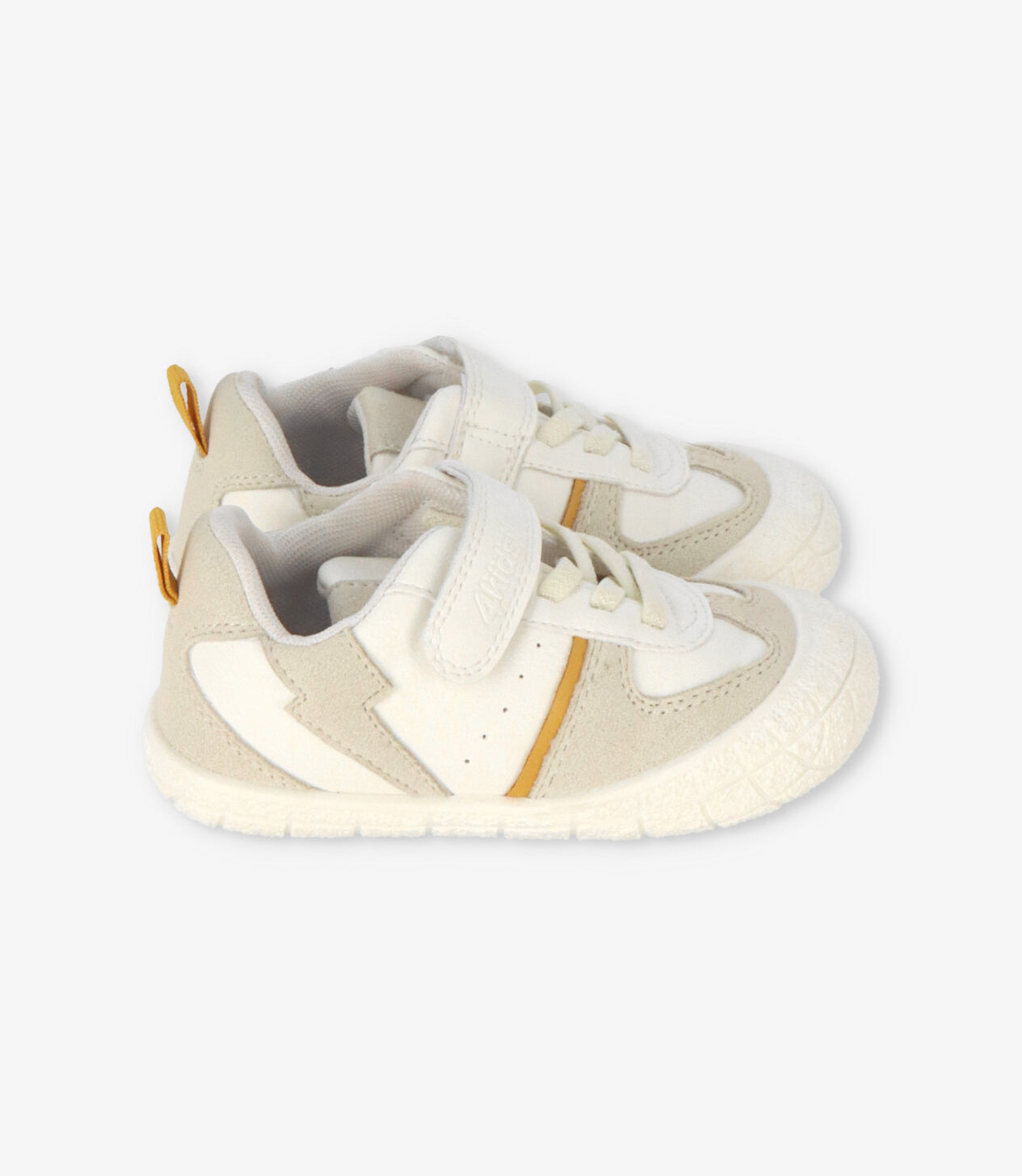 Zapatilla para bebé niño con diseño de rayo en el costado.
